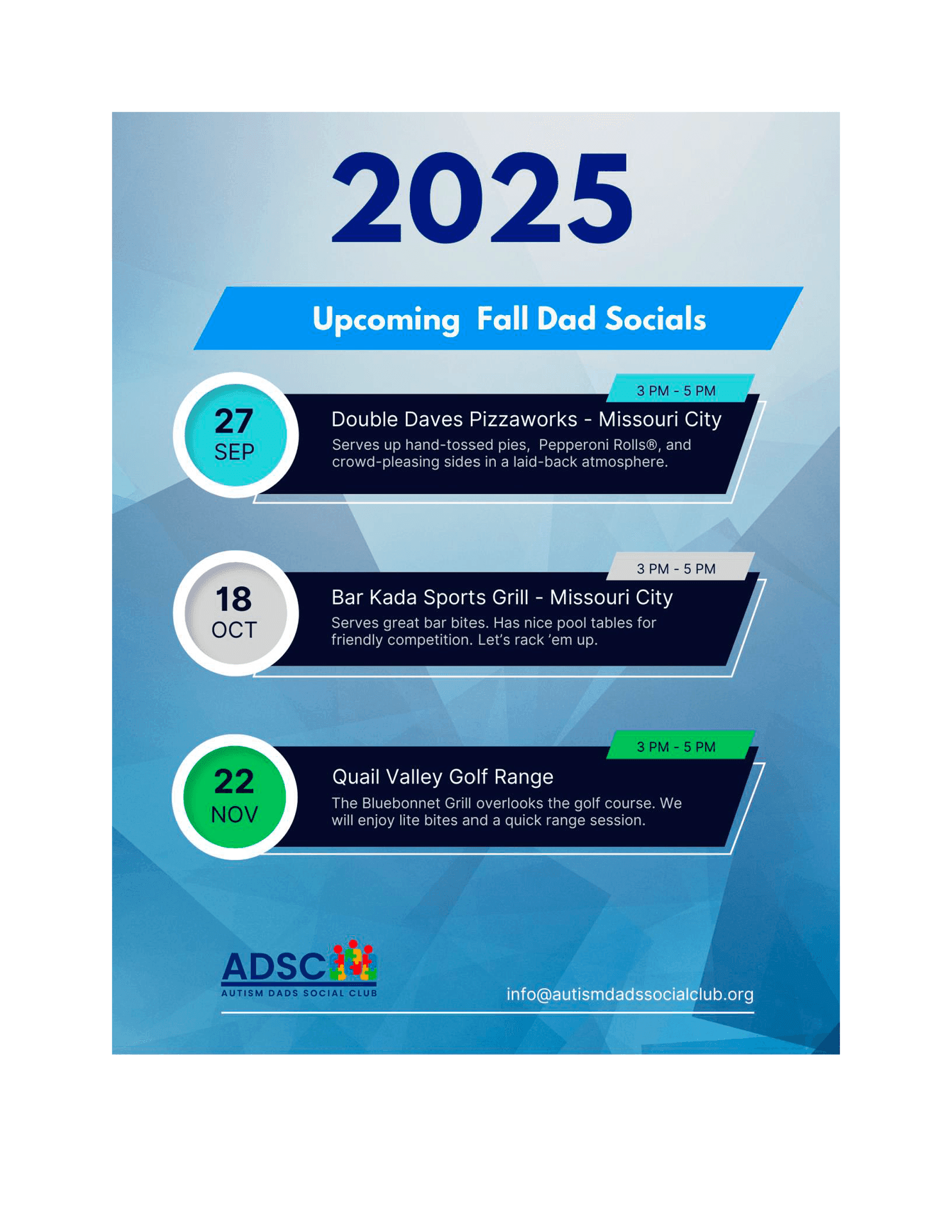 The Autism Dads Social Club welcomes the opportunity to collaborate with nonprofit organizations and businesses serving our local autism community. If you are interested in having your business become a vendor at one of our signature family events, please contact us. One of our team members will follow up with you.