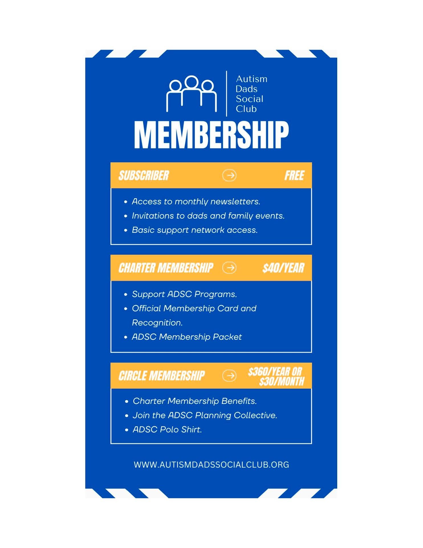 Autism Dads Social Club was founded in 2022. We welcome dads with autistic children in our community to become charter or circle members of our club. Your donations help support the continuation and growth of our nonprofit organization.